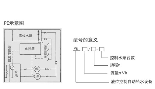 該設(shè)備由水泵機(jī)組、電控系統(tǒng)、液位控制器、閥門管路、共同底座等組成, (見示意圖)